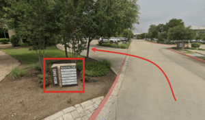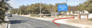 Entrance is located between Mesa Oaks Professional Center sign and The Children’s Courtyard sign.